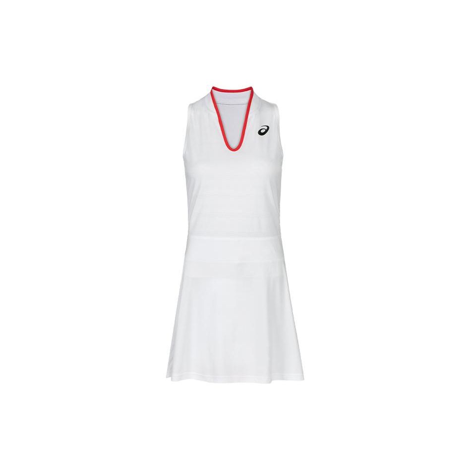 Asics Платье Match Однотонное V-образный вырез Теннисная вязка Без рукавов Платье Женские платья Молочно-белый 2042A254-100