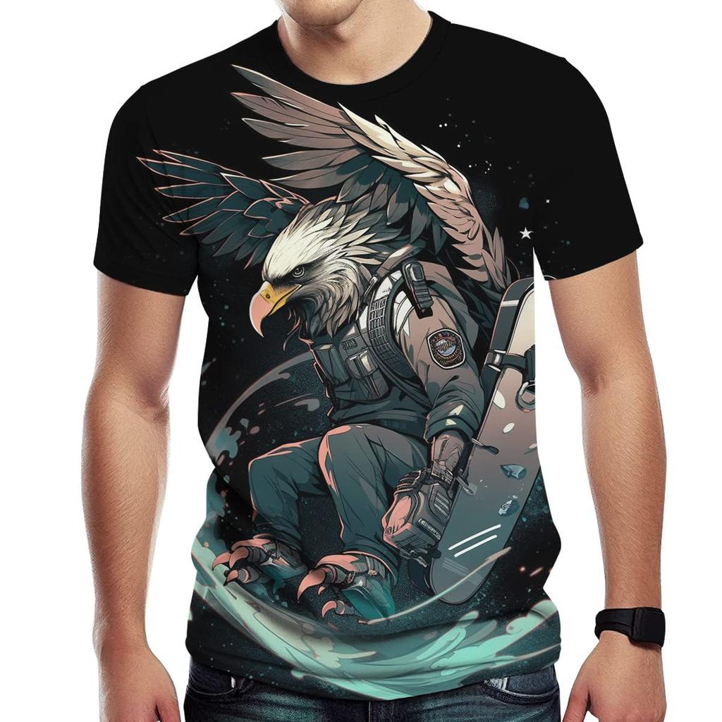 Summer Round Neck 3D American Eagle Pattern Print Top Fashionable Casual Short Sleeved Men's T-shirts