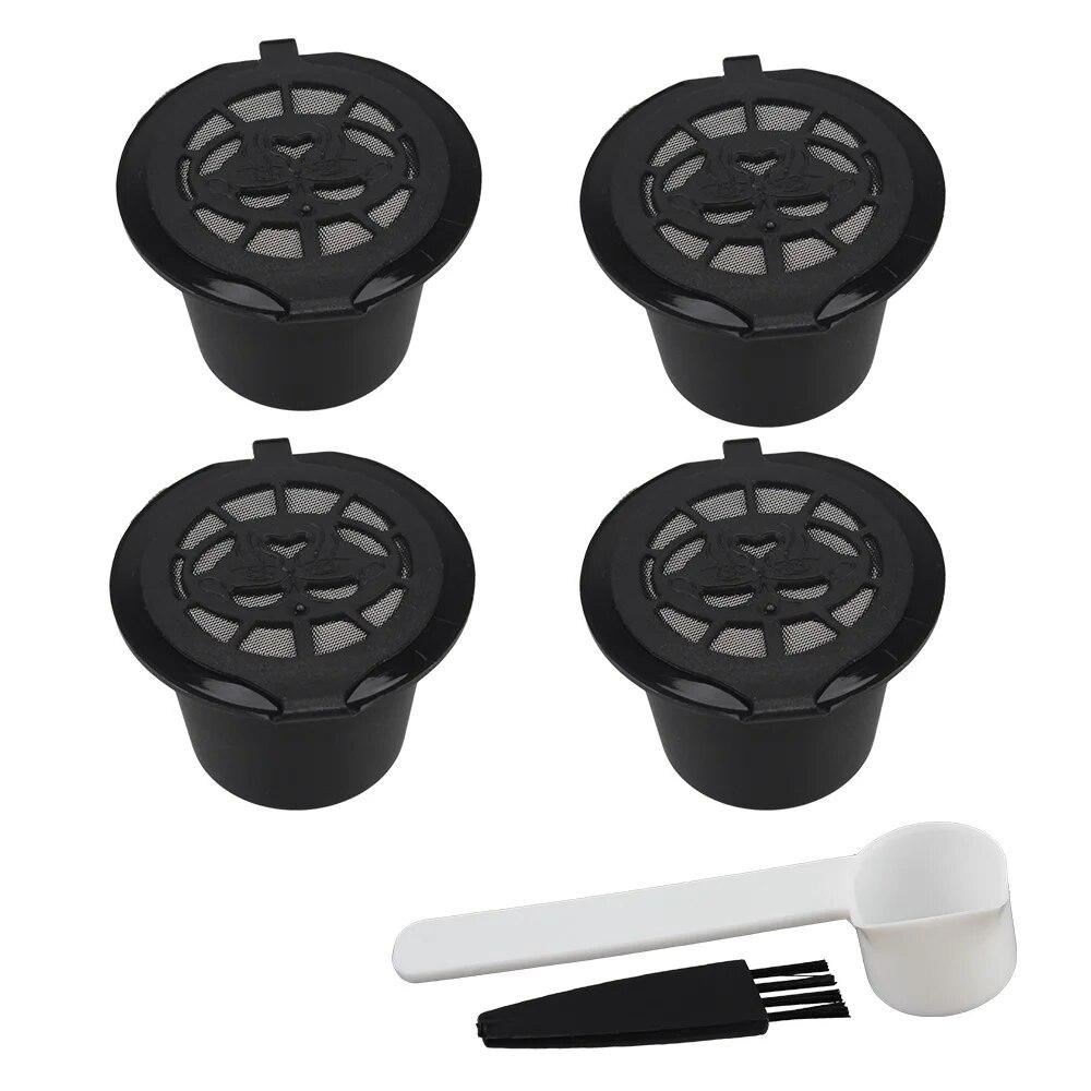 4 шт. Многоразовые кофейные капсулы, чашка с ложкой и щеткой, кофейный фильтр для кофеварки Nespresso