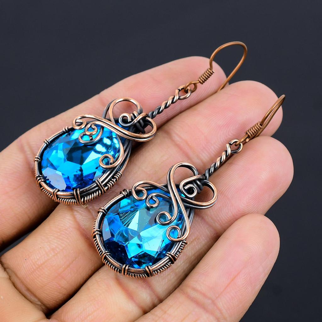 Серьги с голубым топазом, Ювелирные изделия из драгоценных камней, обернутые медной проволокой 999 пробы, Серьги ручной работы, На День благодарения