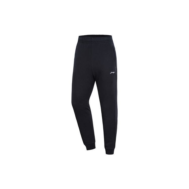 Li Ning повседневные зауженные длинные брюки для бега, трикотажные спортивные брюки, мужские низы, черный цвет AKLQA55-1