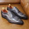 Fashion Big Sizes Handmade Mens Wingtip Oxford Shoes Genuine Calf Leather Traditional Brogue Dress Shoes Wedding Formal Shoes for Men