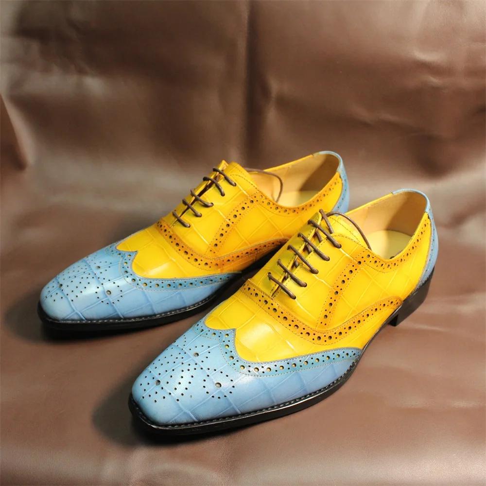 Модные Роскошные Оксфорды из Натуральной Кожи для Мужчин Остроносые На шнуровке Комбинированные Цвета Формальные Туфли с Крокодиловым Узором для Вечеринки