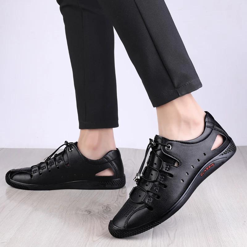 Fashion Summer Beach Camping Beach Shoes Hollowed Out Men's Sandals Lightweight Breathable Leather Casual Shoes Simple Men's Flat Shoes
