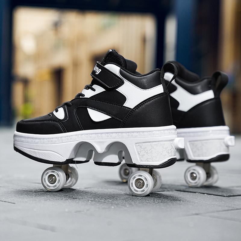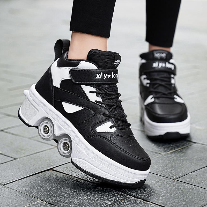 Детские скрытые четырехколесные роликовые кроссовки, повседневные деформируемые паркур-кроссовки, ролики для катания по кругу, взрослые кроссовки для бега