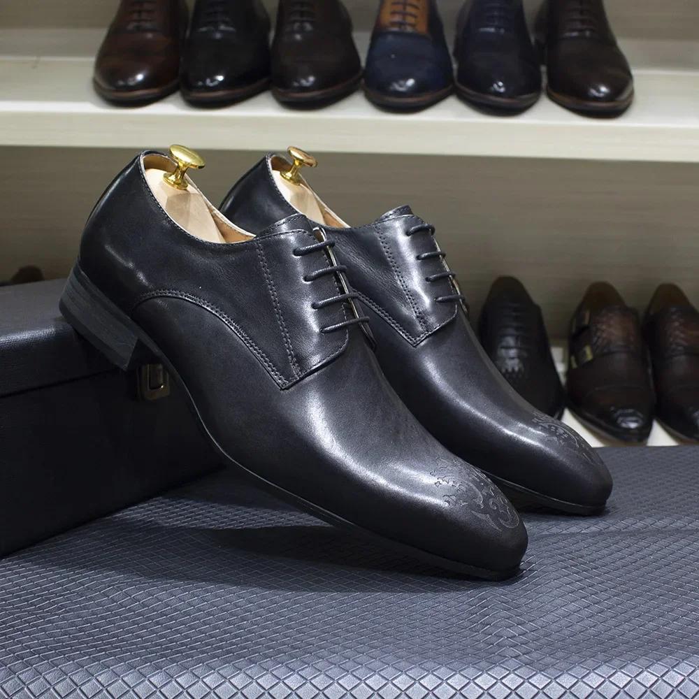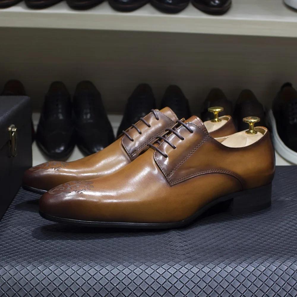Модные классические мужские туфли дерби из натуральной коровьей кожи, свадебная обувь, размер ЕС 38-47, шнуровка, заостренный носок, ручная работа, деловая формальная обувь