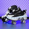 Двухрядные роликовые коньки с четырьмя колесами, светодиодная подсветка, роликовые коньки двойного назначения, мужские и женские повседневные кроссовки, спортивная обувь для прогулок с собакой