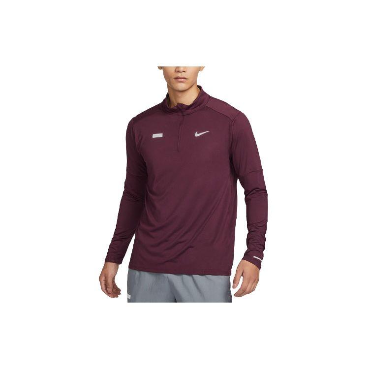 Nike Футболка Dri-Fit Striped Logo Print Half-molny Long Sleeve American Vintage T Shirt Men Tops Dark-Brown-Red FB8557-681