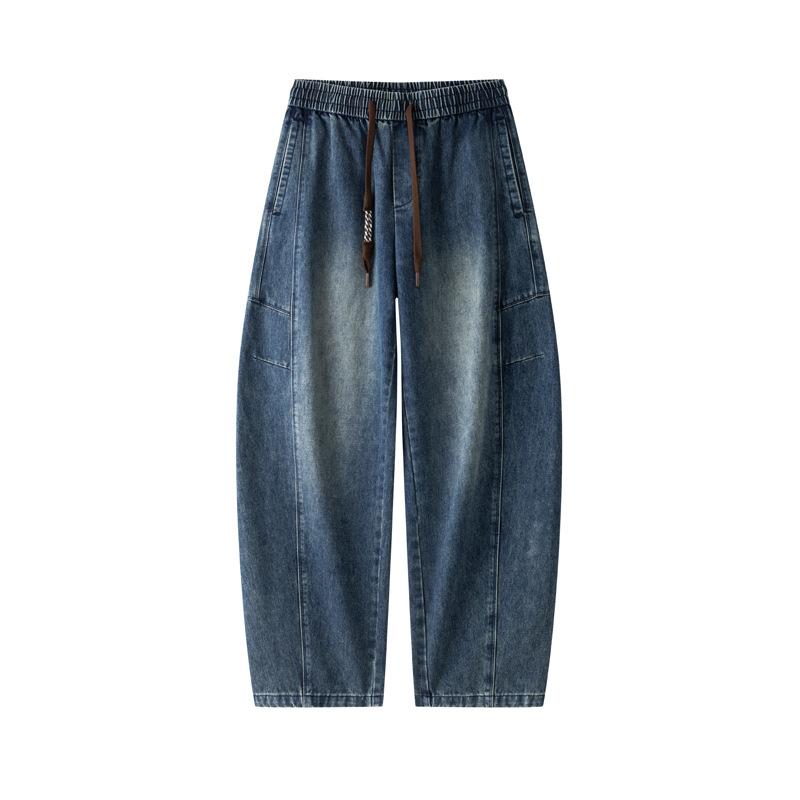 Осень и Зима Новые Свободные Джинсовые Брюки на Резинке и Кулиске Широкие Брюки