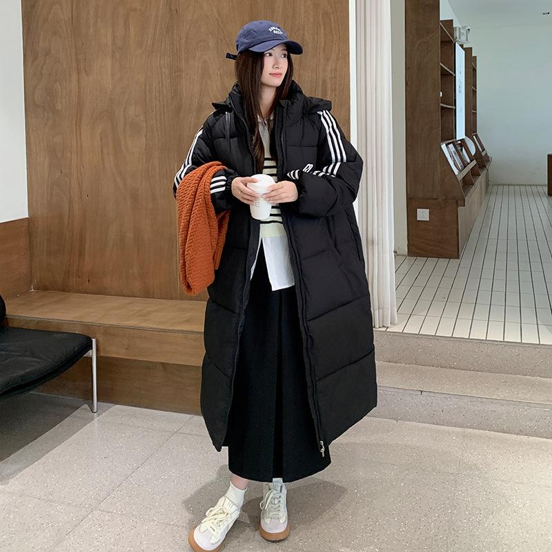 Новая пара Трехполосная Толстовка с капюшоном Хлопковая одежда Женская Зимняя Длинная Классическая Одежда Свободная Пуховая Хлопковая Куртка Пальто — купить товар онлайн с бесплатной доставкой по всему миру!