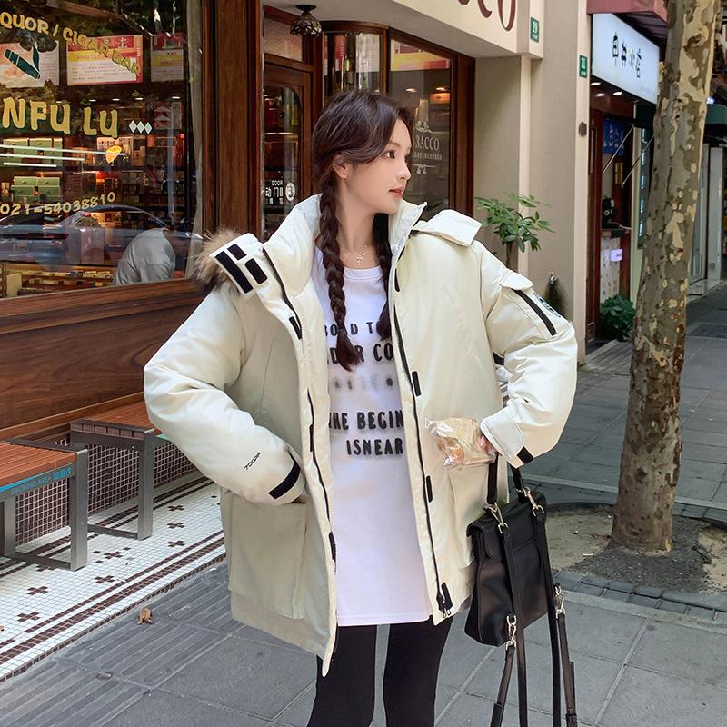 Зимний женский утолщенный свободный костюм-хлеб, парный, для улицы, холодостойкое хлопковое пальто, короткое, с капюшоном, с большим шерстяным воротником, рабочая куртка
