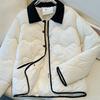 Маленький аромат Корейская версия контрастной стеганой куртки с швами Короткая осенне-зимняя короткая ретро куртка с лацканами Тонкая стеганая куртка.