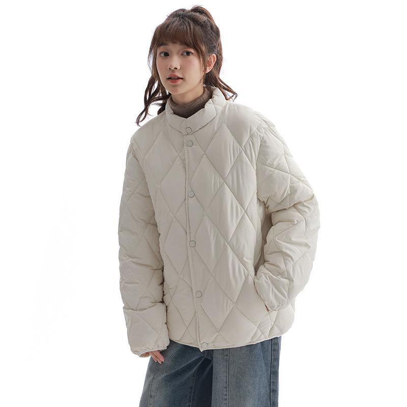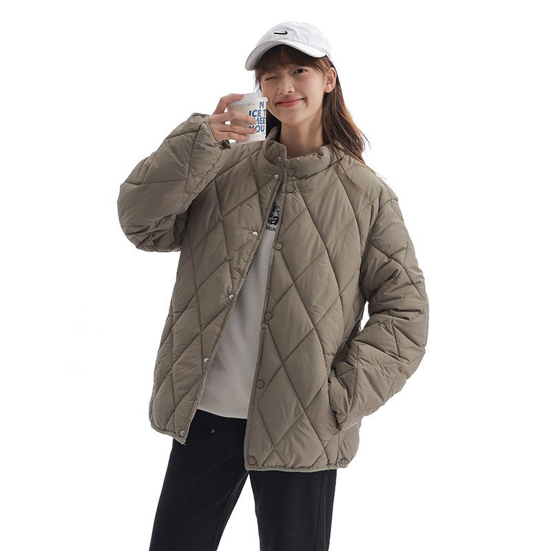 Новая корейская версия женской короткой свободной куртки на хлопковой подкладке со стойкой воротником, зимняя модная куртка на хлопковой подкладке с ромбовидным узором.