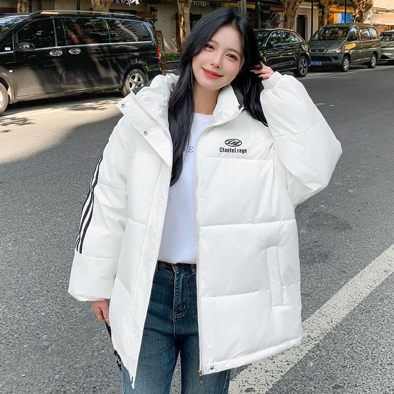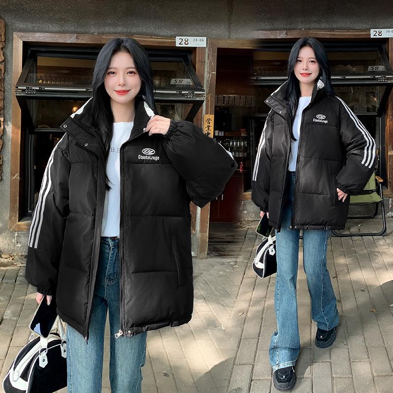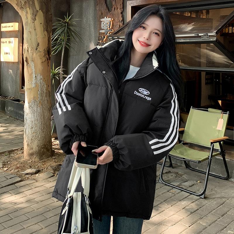 Студенческая корейская трехцветная куртка-пальто на хлопковой подкладке женская зимняя толстая теплая университетская свободного кроя с воротником «хлеб» и одежда.