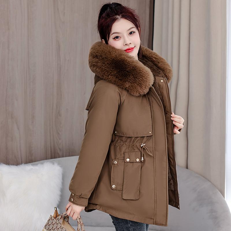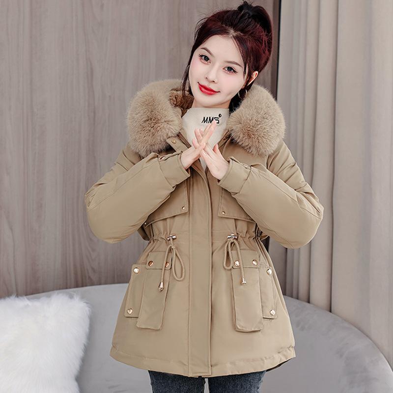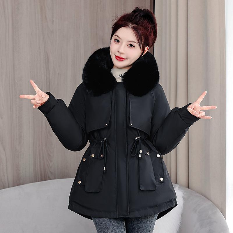 Новая зимняя парка со съемным шерстяным воротником, хлопковое пальто с капюшоном, корейская версия, приталенное короткое хлопковое пальто, универсальная женская куртка