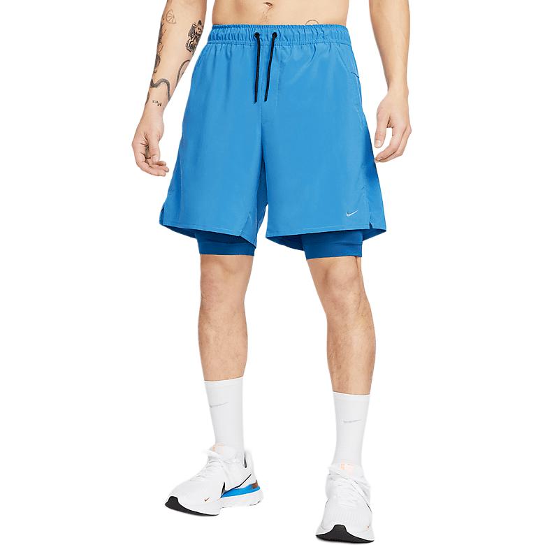 Nike Неограниченные однотонные многофункциональные спортивные шорты Dri-FIT на шнуровке, два в одном, мужские шорты синего цвета DV9334-402