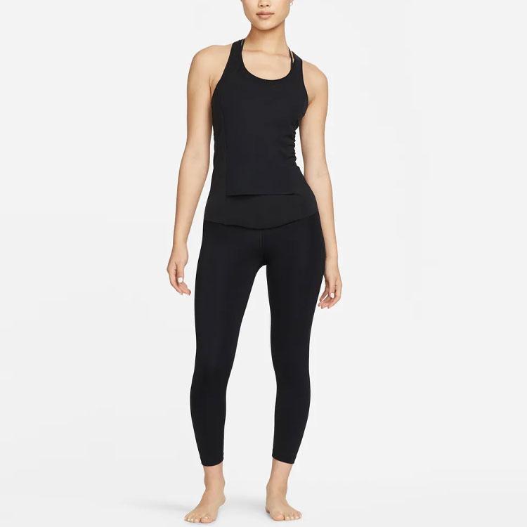 Nike Yoga Dri-FIT Luxe Ribbed Breathable Solid Color Wide Lace Tank Top Women Tops Black DM7005-010