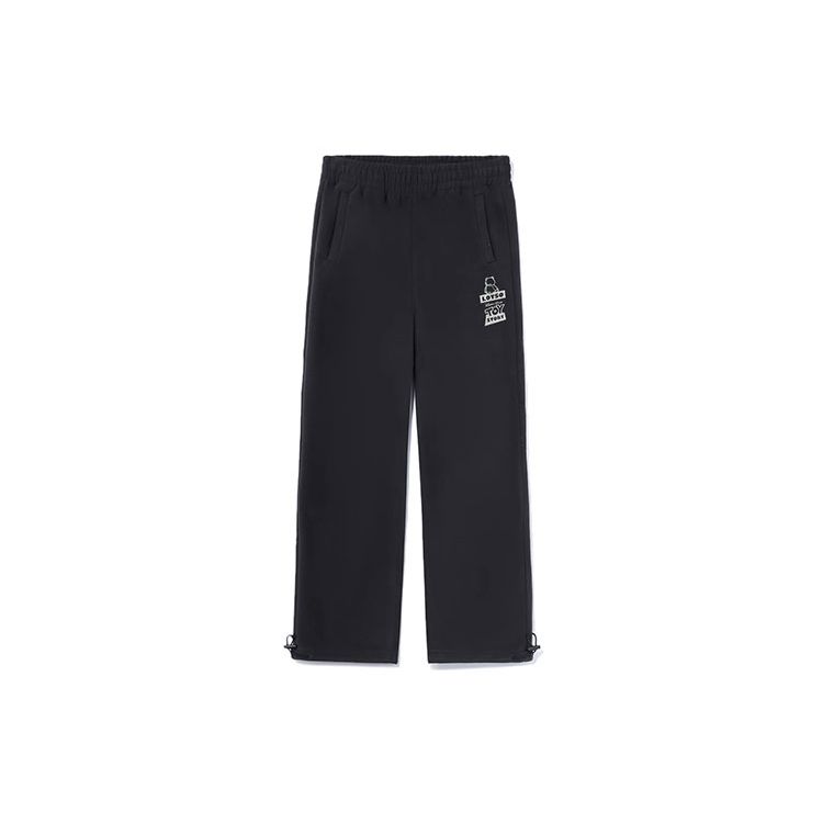 Штаны женские свободные трикотажные спортивные с подкладкой из однотонной ткани с флисовой подкладкой Li Ning X Disney Collaboration Pixar Strawberry Bear, черные AKLR742-2