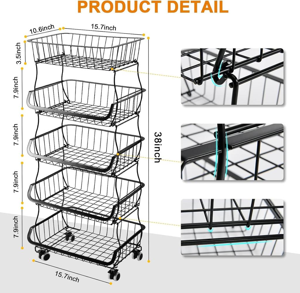 Многоцелевое решение для хранения данных: Тележка для хранения в кладовой большой вместимости достаточно просторна, чтобы вместить различные предметы, такие как фрукты, лук, картофель, хлеб, закуски, консервы, продукты и т. д.. Идеально для кухни, кладовой, ванной комнаты, столовой, подсобного помещения, шкафа и многого другого.