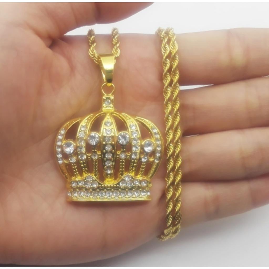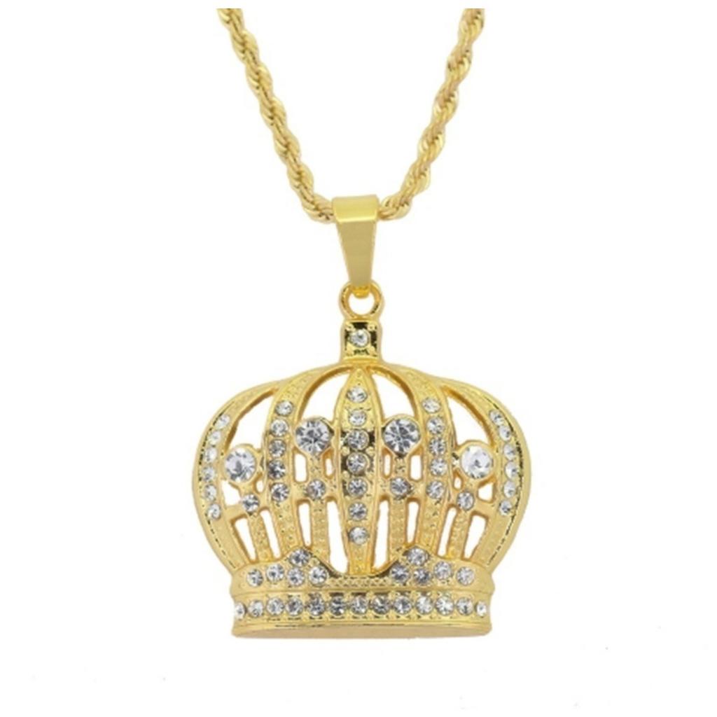 Новая Мода Хип-Хоп Корона Короля Подвески Ожерелье Iced Out Стразы Женское Мужское Ожерелье Байкерские Украшения