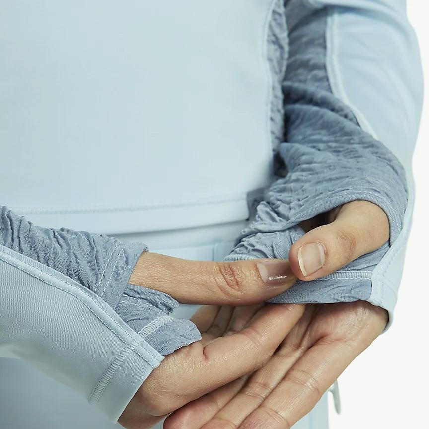 Nike Футболка реглан с цветными блоками и высоким воротом, повседневная, быстросохнущая, с длинным рукавом, для бега, женская, светло-голубая FN4707-440