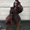 Темно-коричневая замшевая куртка с лацканами женская теплая с длинным рукавом повседневная верхняя одежда ретро британский стиль темпераментная куртка осень 2025