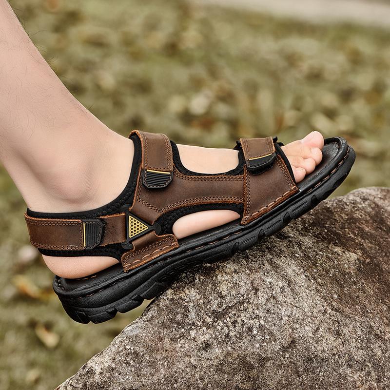 Модные летние новые мужские кожаные сандалии Легкие и удобные пляжные туфли Ретро Очень большие Уличные повседневные спортивные сандалии