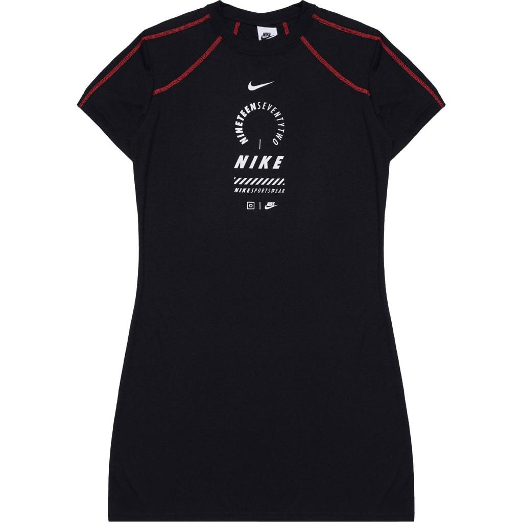 Nike Спортивная одежда с принтом логотипа, удобное платье с круглым вырезом и коротким рукавом для спорта, женские платья, черное HF5955-010