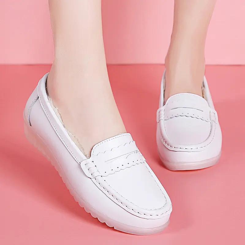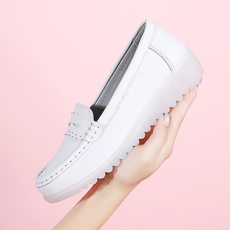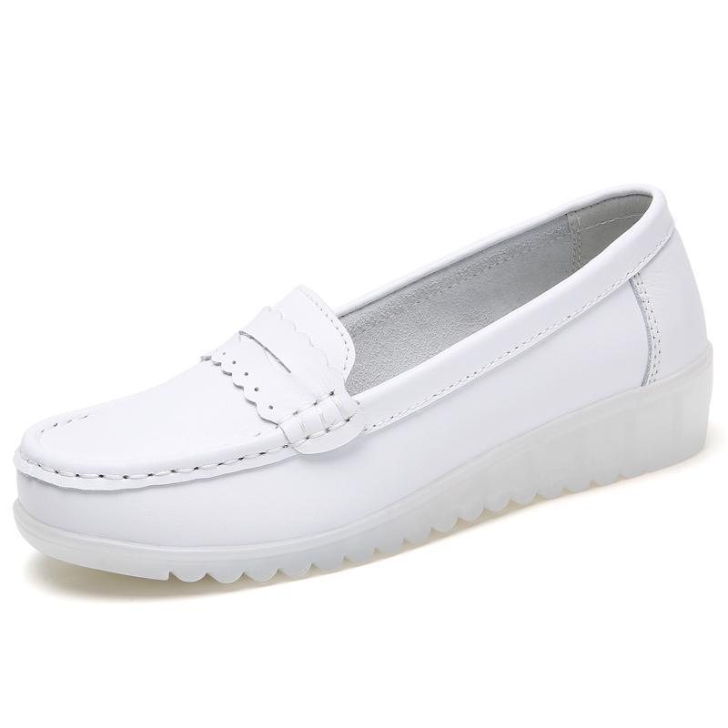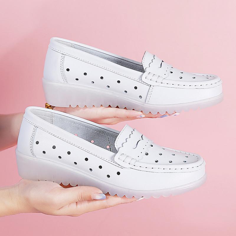 Модная кожаная обувь медсестры с воздушной подушкой для женщин, весна-лето, новая, на мягкой подошве, дышащая, на плоской подошве, белая обувь