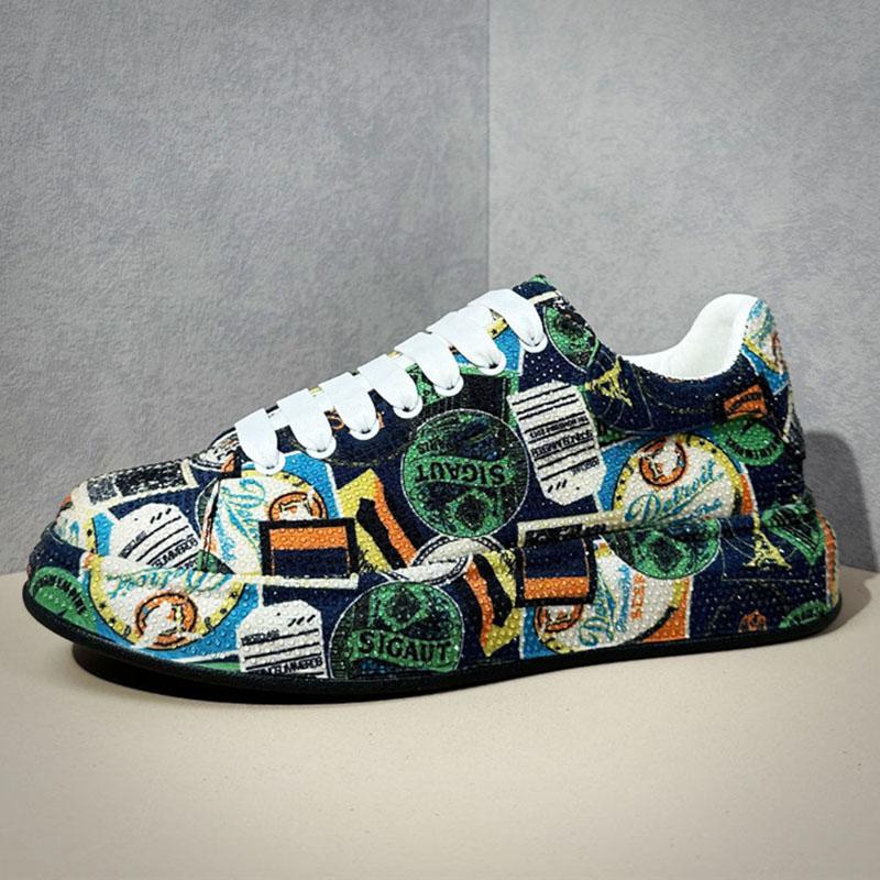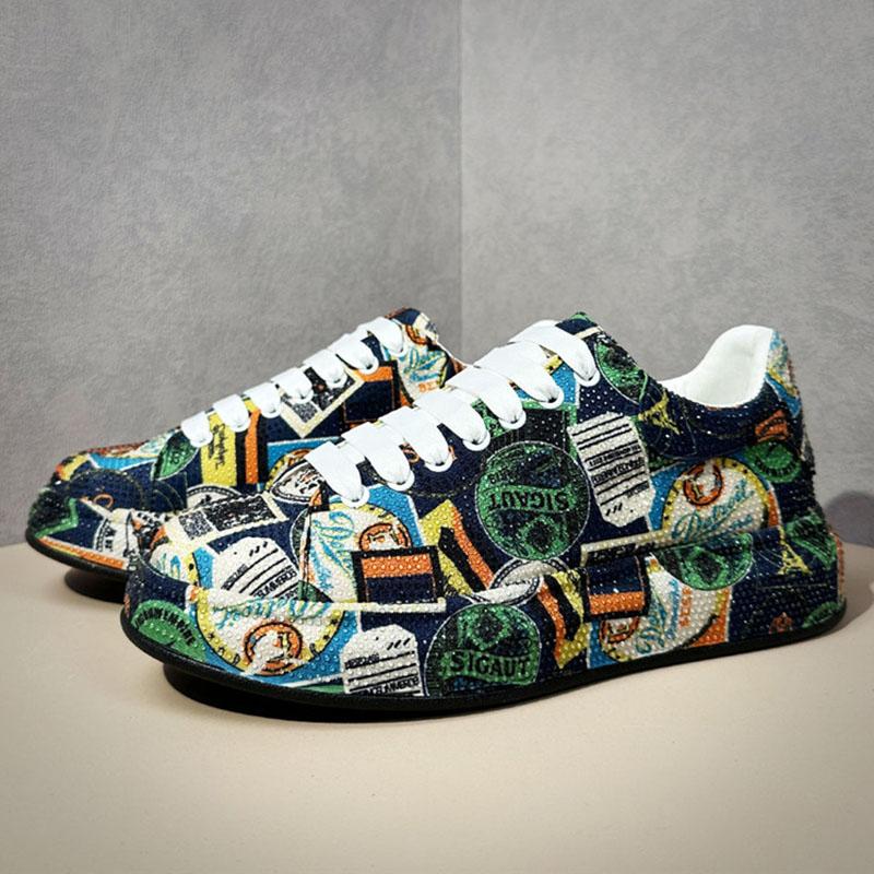 Мода Роскошь Дизайнерская Модная Мужская Шнуровка Стразы Толстая Подошва Повседневная Обувь Балетки Мужские Кроссовки для Ходьбы Интернет-Знаменитости