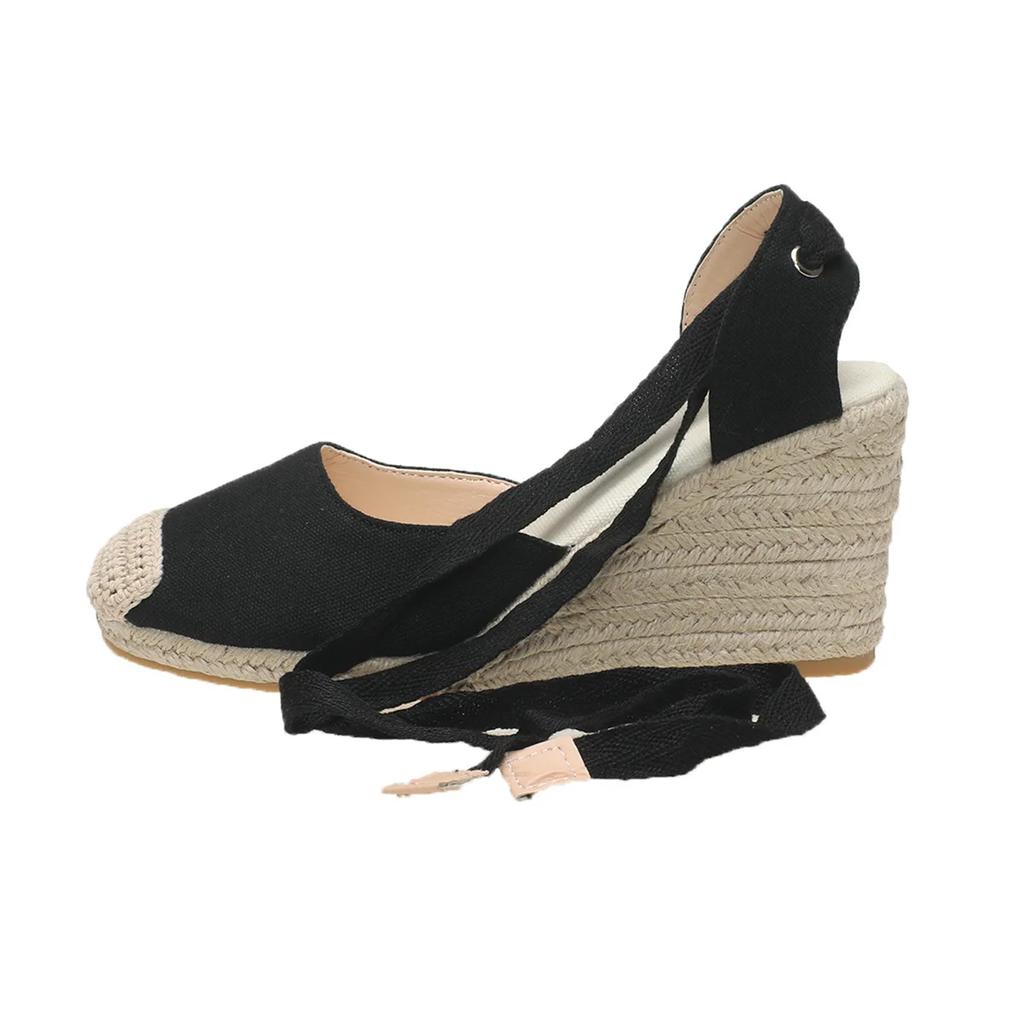 Модные клиновидные сандалии для женщин летние с закрытым носком на ремешке на щиколотке сандалии-слингбэки женские удобные на шнуровке повседневные сандалии