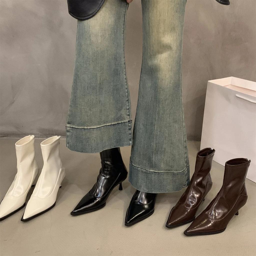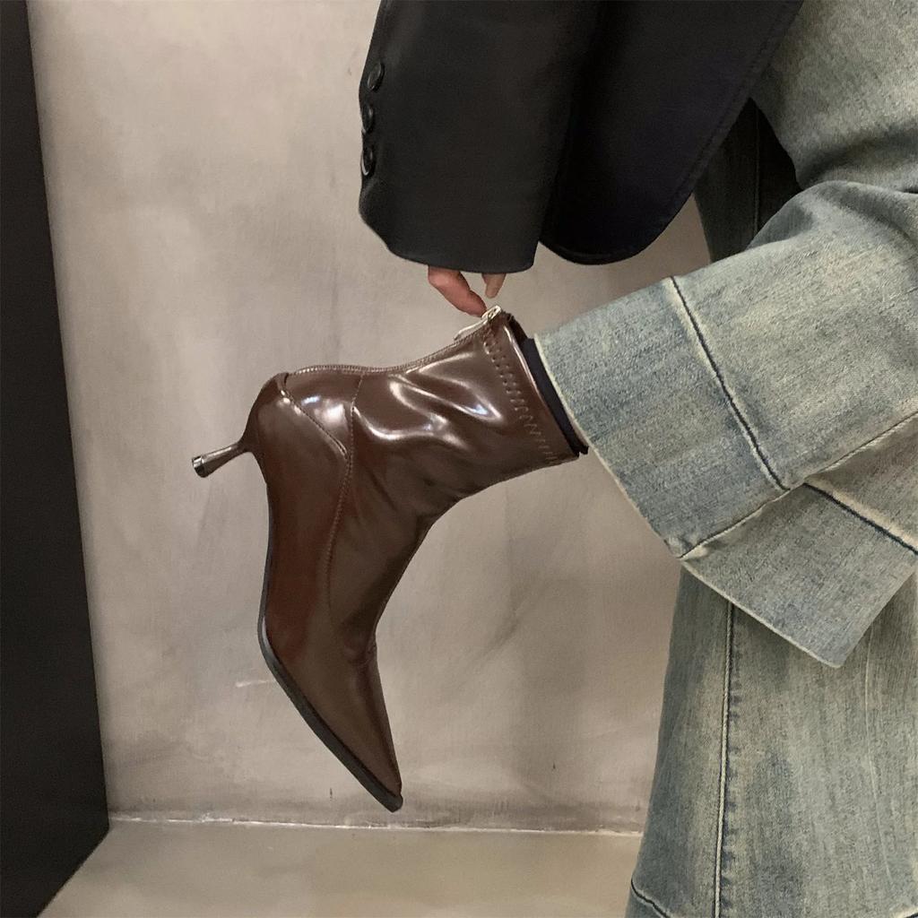 Модные женские короткие ботинки на высоком каблуке, модная обувь на молнии, ретро-стиль, осень-зима, с острым носком, женская обувь для танцев, вечеринок, выпускного бала