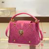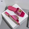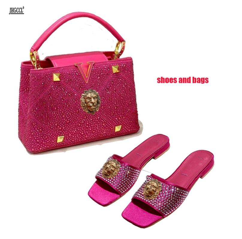 Модные женские шлепанцы высокого класса с бриллиантами, розово-красные, с открытым носком и задником, крутые шлепанцы с львиной головой, шлепанцы со стразами, набор с цепочкой-сумкой B9