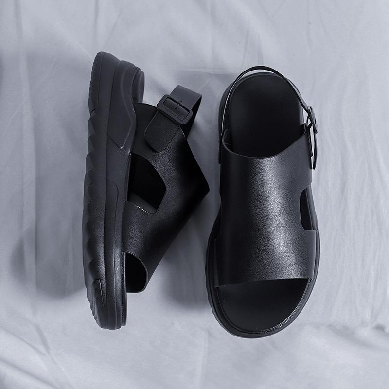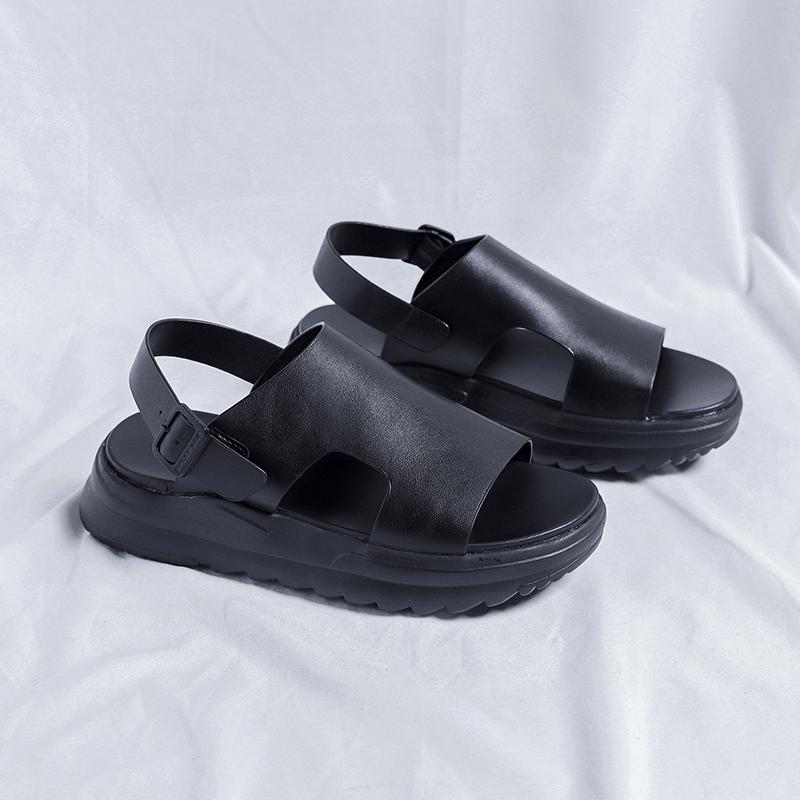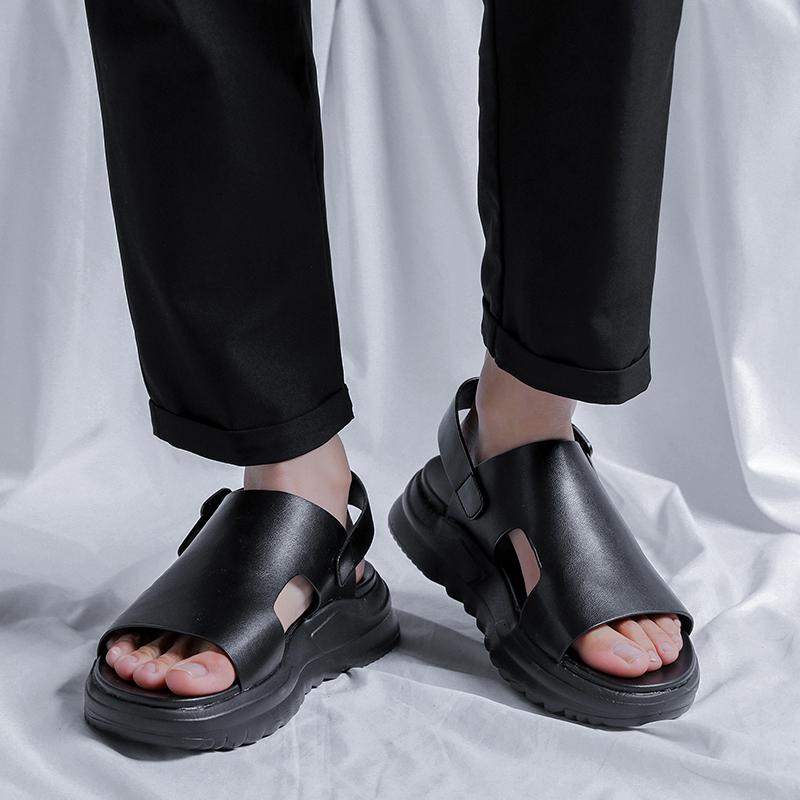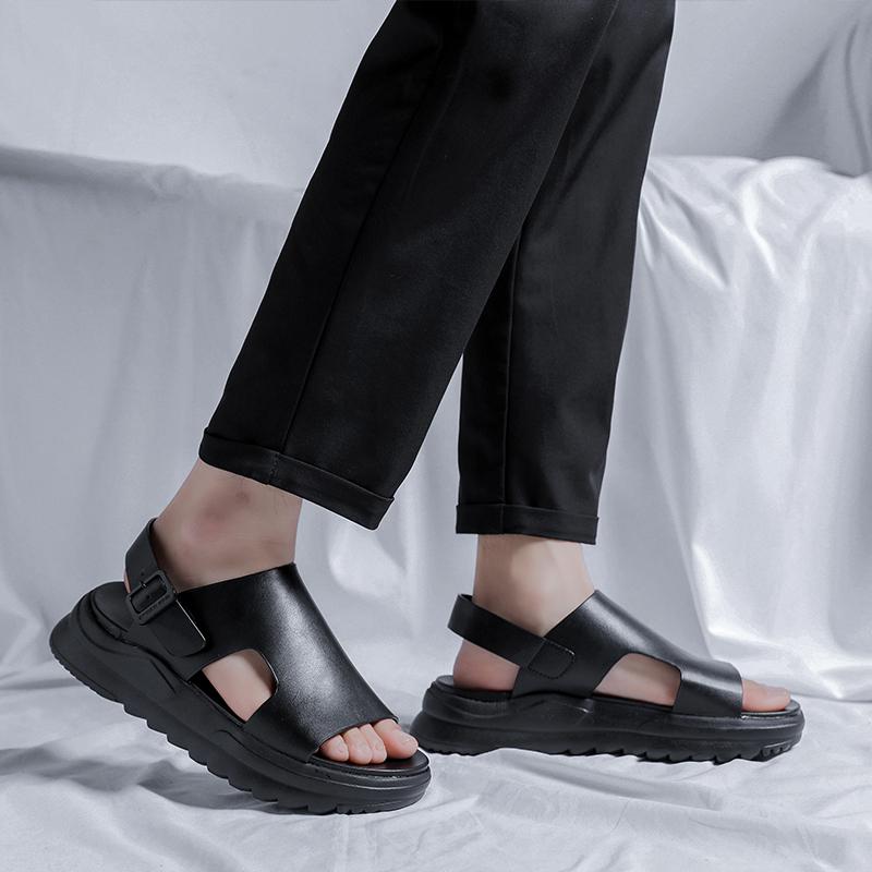Fashion Men Sandals Summer 2025 New Casual Leather Outdoor Walking Shoes Non-slip Open-toe Platform Sandals Comfy Soft Roman Slides