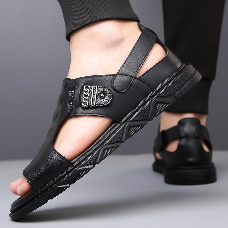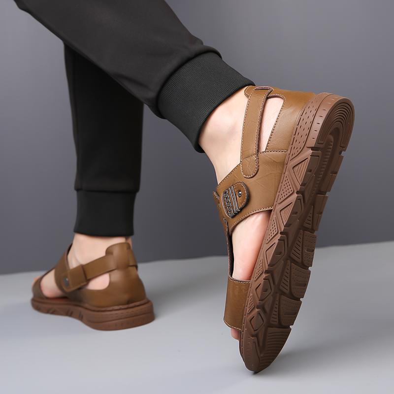 Мода 2025 Летние Повседневные Сандалии Мужские Полые Дышащие Кожаные Сандалии Модная Повседневная Дизайнерская Обувь Мужская Однотонная Деловая Обувь