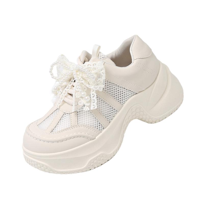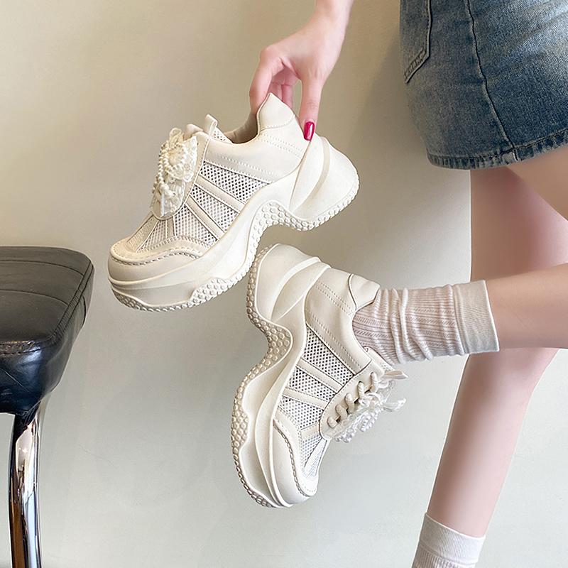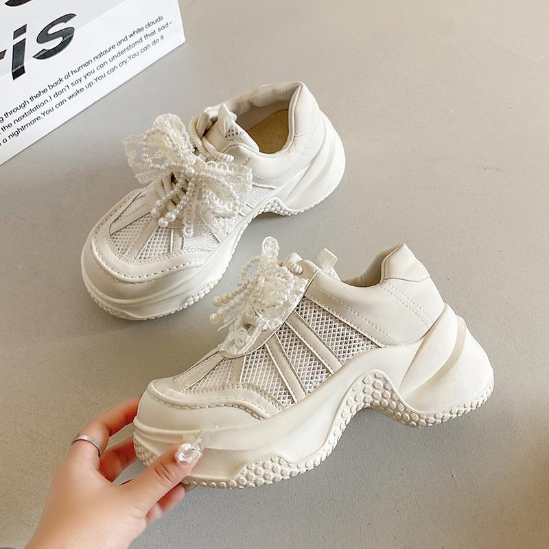Модные летние туфли на толстой подошве с перфорацией, вулканизированные, женские массивные кроссовки на платформе, белые, женские удобные спортивные туфли на шнуровке