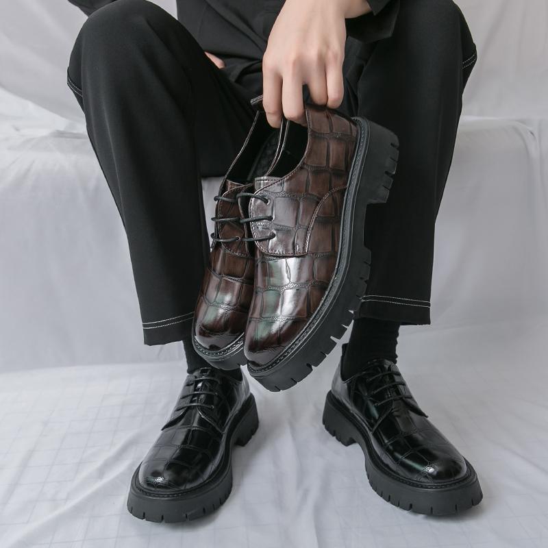 Модные Ретро Мужские Деловые Дерби Туфли Черные Коричневые Большеголовые Увеличивающие Рост Модные На шнуровке Кожаные Туфли Социальные Туфли Мужские