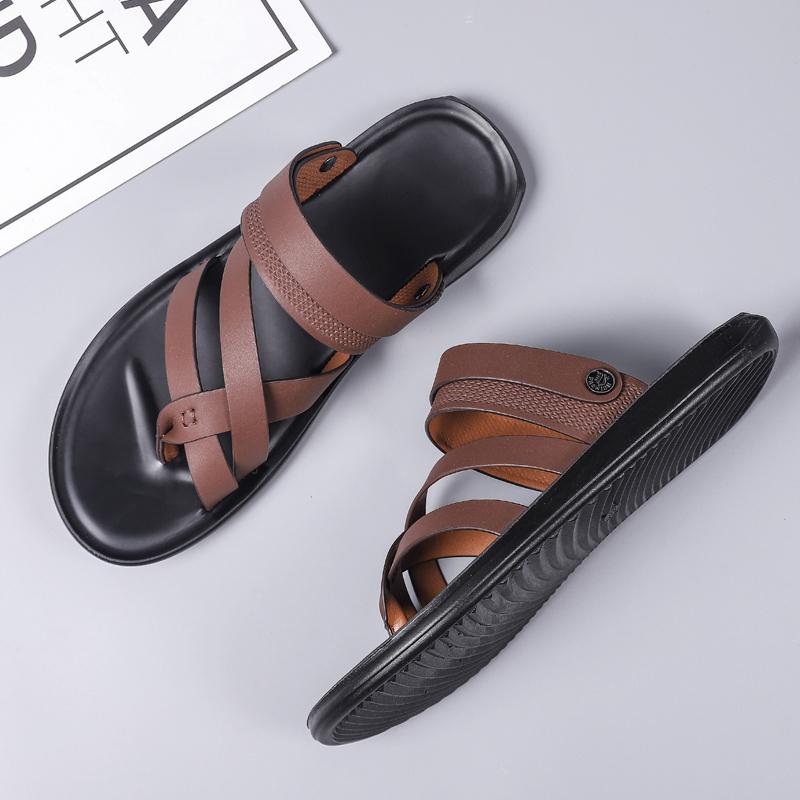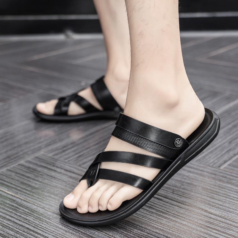Модные мужские летние шлепанцы Классические уличные кожаные повседневные мужские тапочки Удобные нескользящие пляжные сандалии Мужская обувь Мокасины
