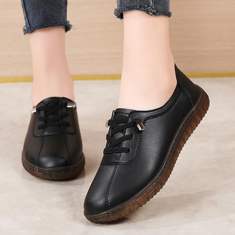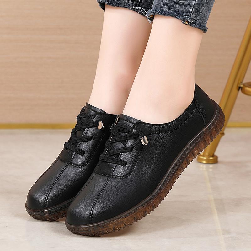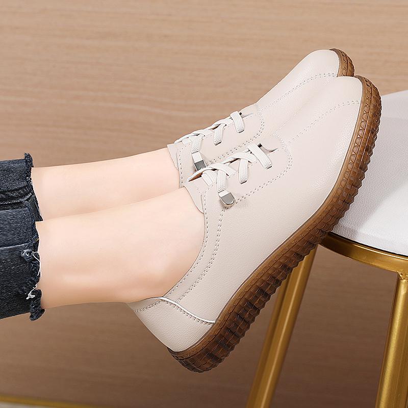 Мода Женщины Ладеис Мать Женщина Натуральная Кожа Балетки Лоферы Белая Обувь Мягкая Нескользящая Вулканизированная Обувь Размер 35-42 Балетки на Мягкой Подошве