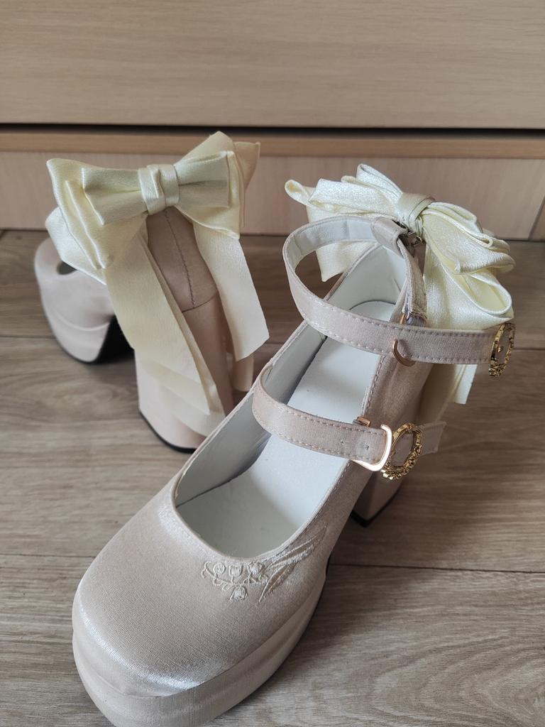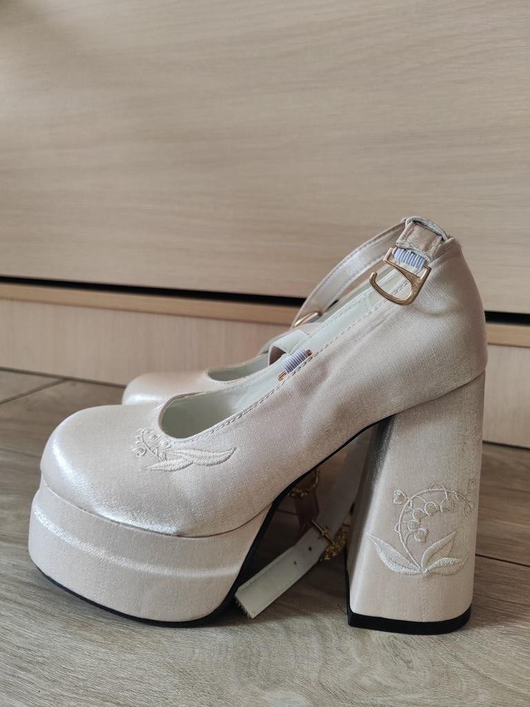 Размер стопы 22,5см заказала 36 размер зная что маломерят и они отлично мне подошли. Очень удобные и красивые туфли, но при транспортировке немного помялись. Бант жёлтого цвета почему то, но при ходьбе это не заметно. Каблуки 12см.
