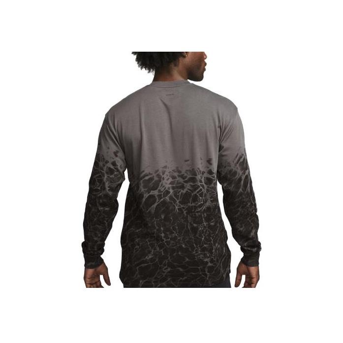 Nike Футболка с вышитым логотипом и водным узором, круглым вырезом и длинными рукавами, унисекс, цвет серый черный FB3031-068