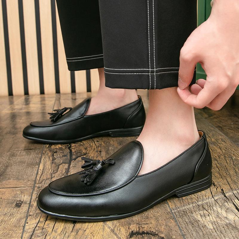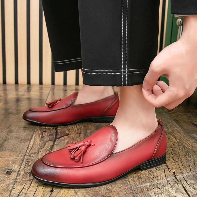 Модные Новые Красные Мужские Лоферы с Кисточками Кожаные Формальные Туфли Элегантная Модельная Обувь Простые Слипоны Мужские Повседневные Туфли Обувь Большой Размер 47