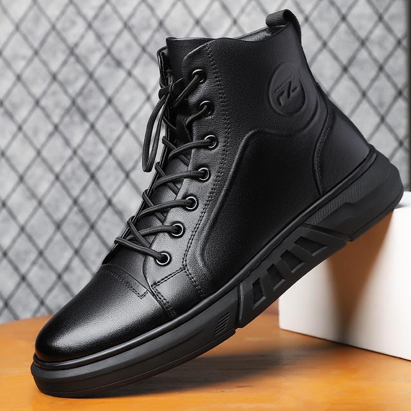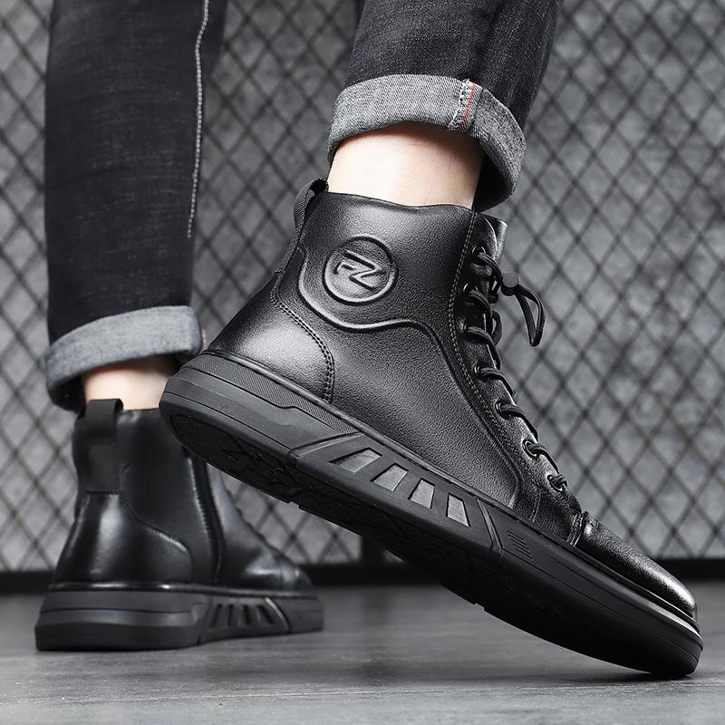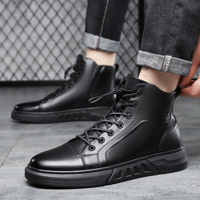 Модная Высококачественная Мужская Повседневная Кожаная Ботильонка Модная Высокая Шнуровка Уличная Нескользящая Обувь для Ходьбы Удобная Плоская Дизайнерская Спортивная Обувь