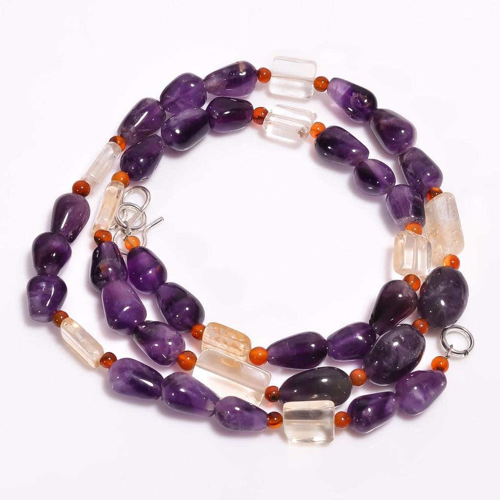 Натуральный Аметист Цитрин Сердолик Микс Формы Бусы Ожерелье 3-11 мм 18" UB-8353 UB-8353