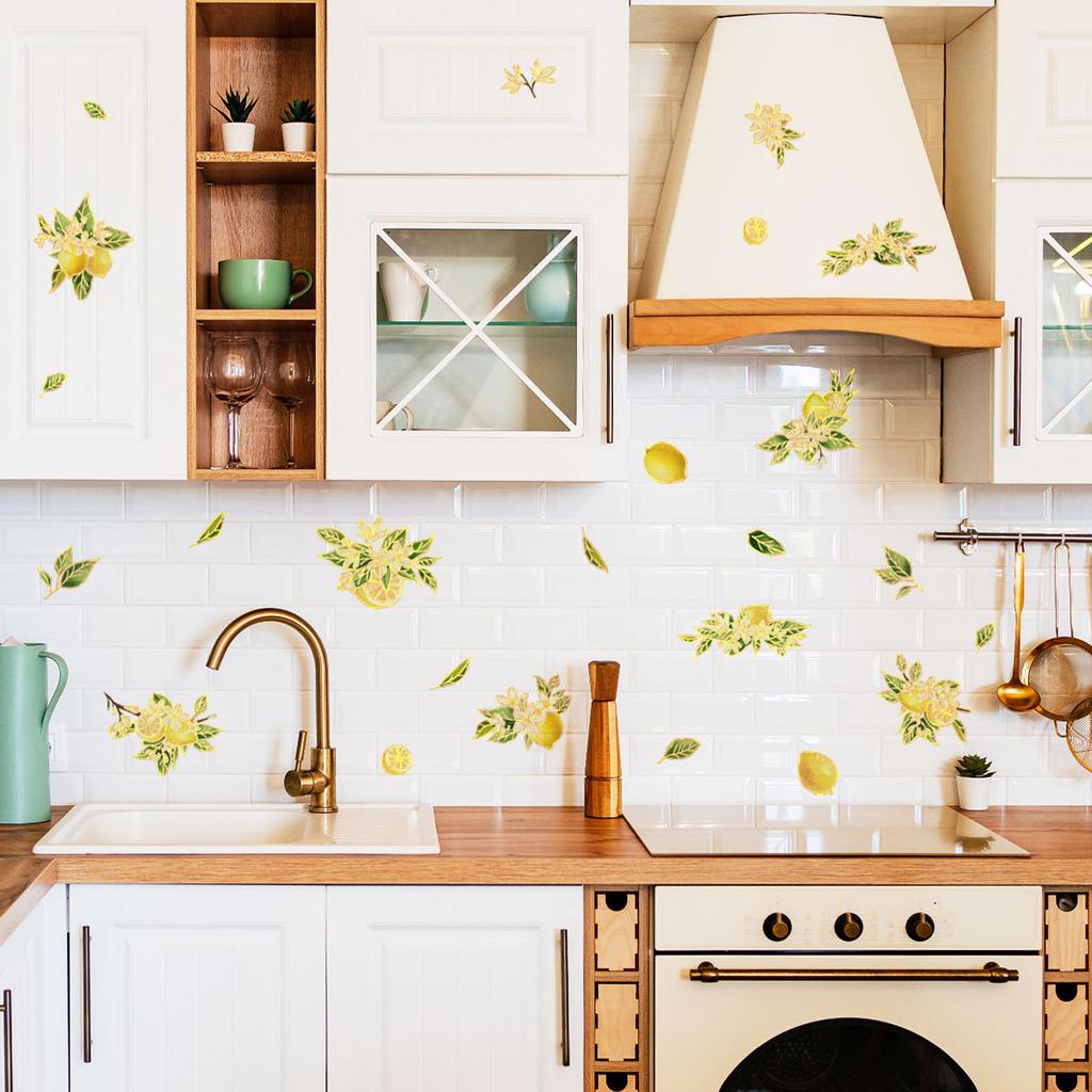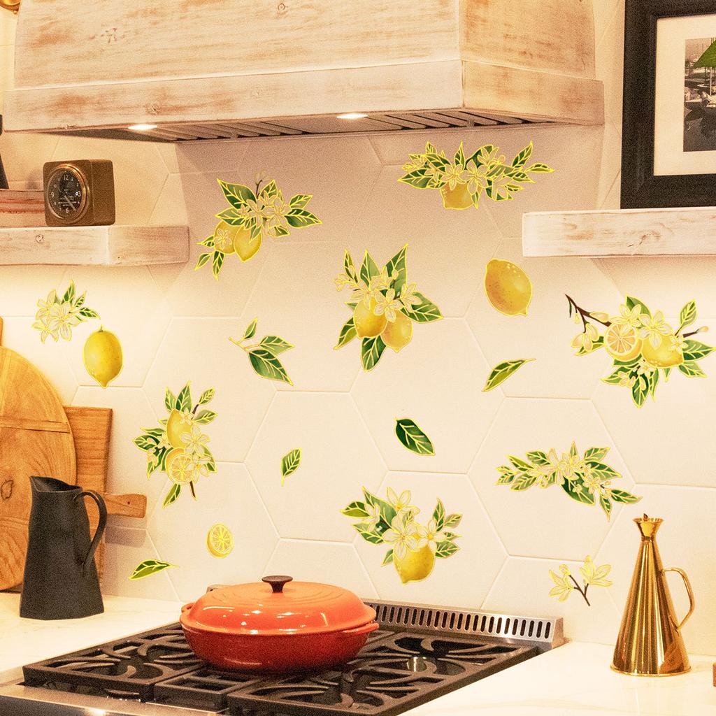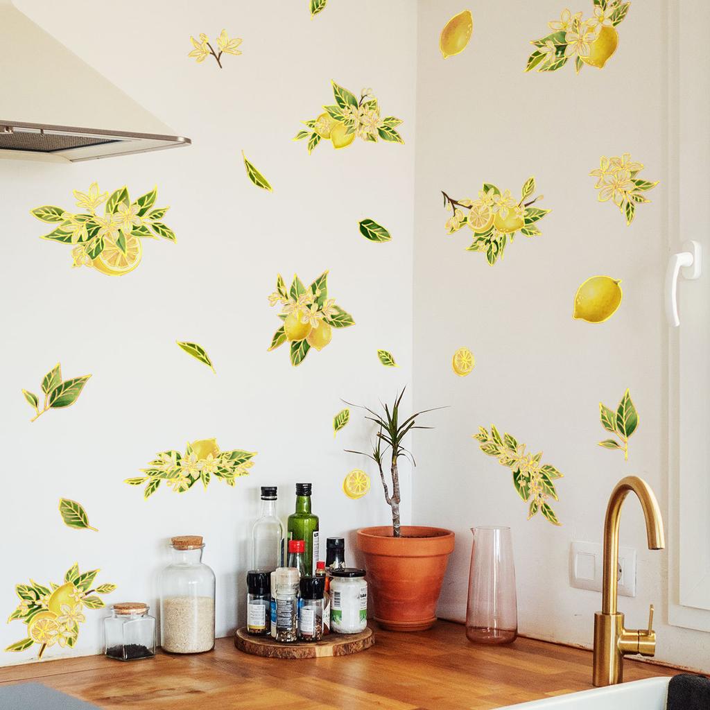 Tj021 Нарисованные вручную линии Листья лимона Бронзирование Наклейка на стену Декорация Детская комната Спальня Фон Самоклеящаяся наклейка на стену