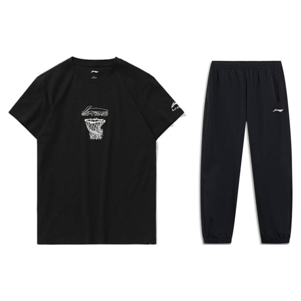 Футболка с коротким рукавом и круглым вырезом Li Ning, быстросохнущие брюки с манжетами, повседневный спортивный костюм для мужчин AHST467-2+AYKT415-1