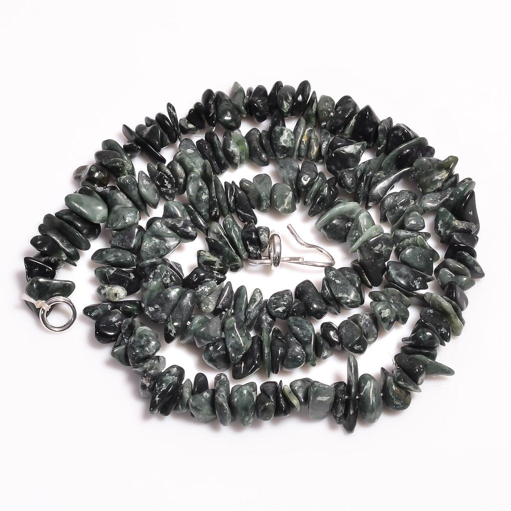 Натуральный Серафинит Необработанный Гладкие Бусины Ожерелье 7-12 мм 17.5" UB-8403 UB-8403