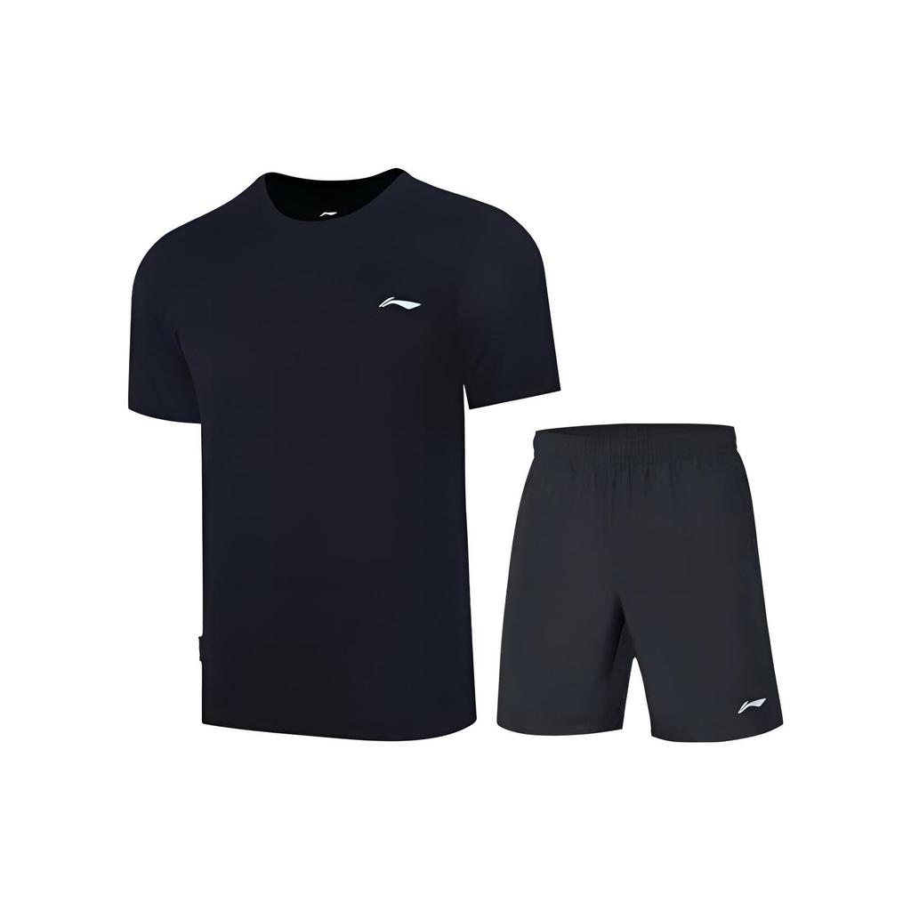 Футболка Li Ning Badminton Series с коротким рукавом, однотонная, дышащая, шорты с пятью точками, повседневный спортивный костюм, мужская спортивная одежда, черный цвет ATST655-1+AAPT551-1 — купить товар онлайн с бесплатной доставкой по всему миру!