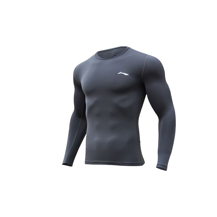 Мужская облегающая легкая футболка для фитнеса Li Ning с логотипом, однотонная, темно-серая, YUDT061-3