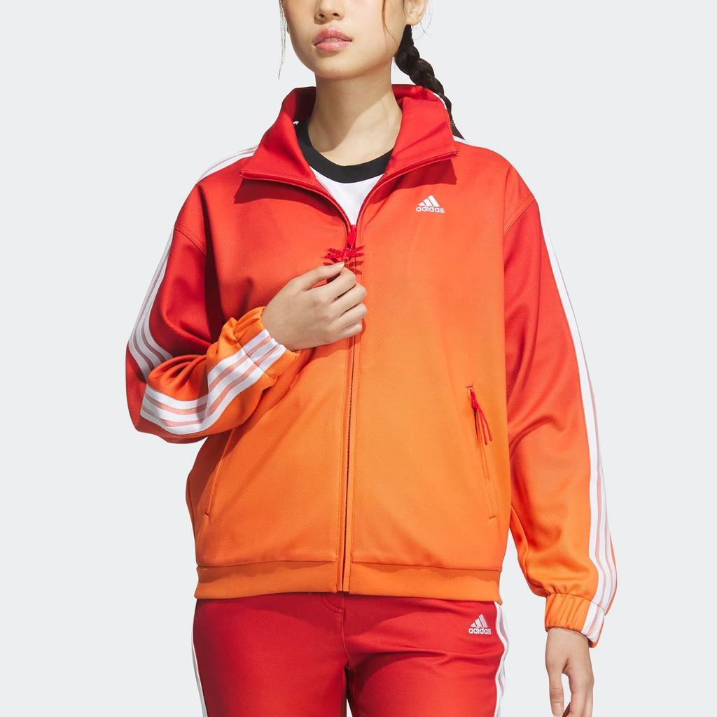 Adidas X Qi Baishi Collaboration SS24 Боковая полоса полувысокий ворот молния длинный рукав куртка женская куртка светло-малиновый белый JG8770